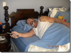 Jared and his family came over, and Hannah and Alicia and April helped me get him in a settled:) Max came over and just loved on him and told him he missed him, he and Max are two peas in a pod:) Max will come and lay in bed with him and watch a movie tomorrow. I got him a juicy hamburger for lunch and then fixed him a good dinner:) Poppy seed chicken, green beans and Mac and cheese, rolls, fresh fruit and tea, what more can a man want? never mind do not answer that!! Can’t wait to sleep in my own bed:) NITE