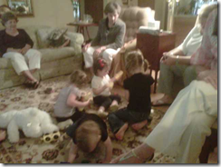 I have what I call the blues today, Mama and Roy and Connie have gone, they left early this am I really enjoyed them and loved watching mother be so happy, she loved having them here. Yesterday Jenn and Jill brought all the girls over